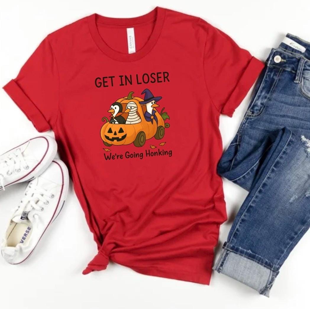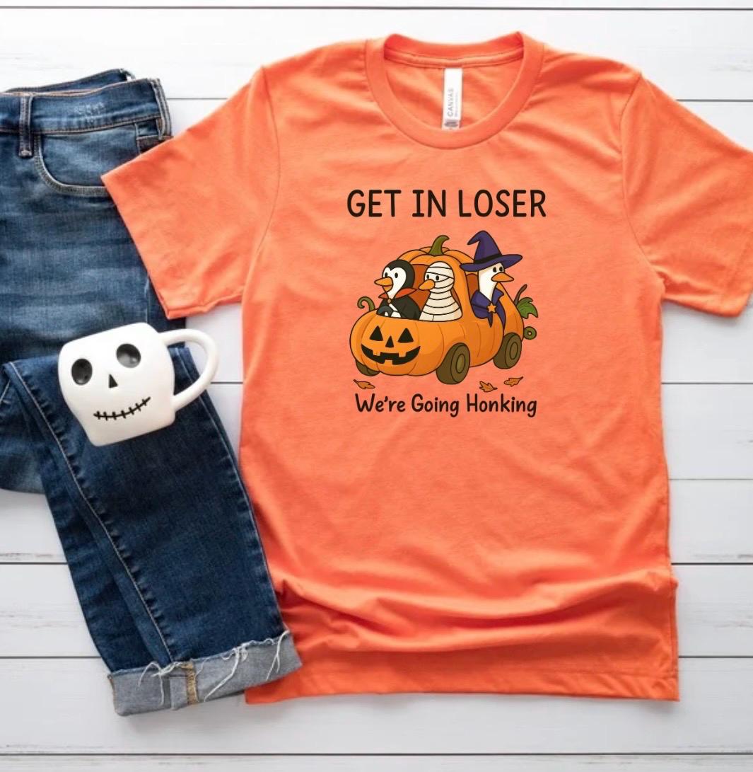 Halloween Silly goose Short Sleeve T-shirt, Halloween Tshirt, Get in Loser we are going Honking