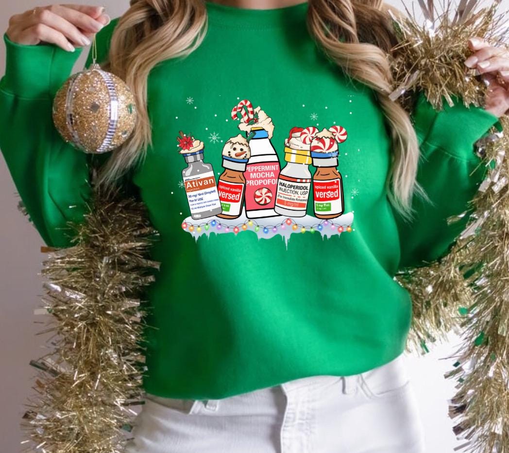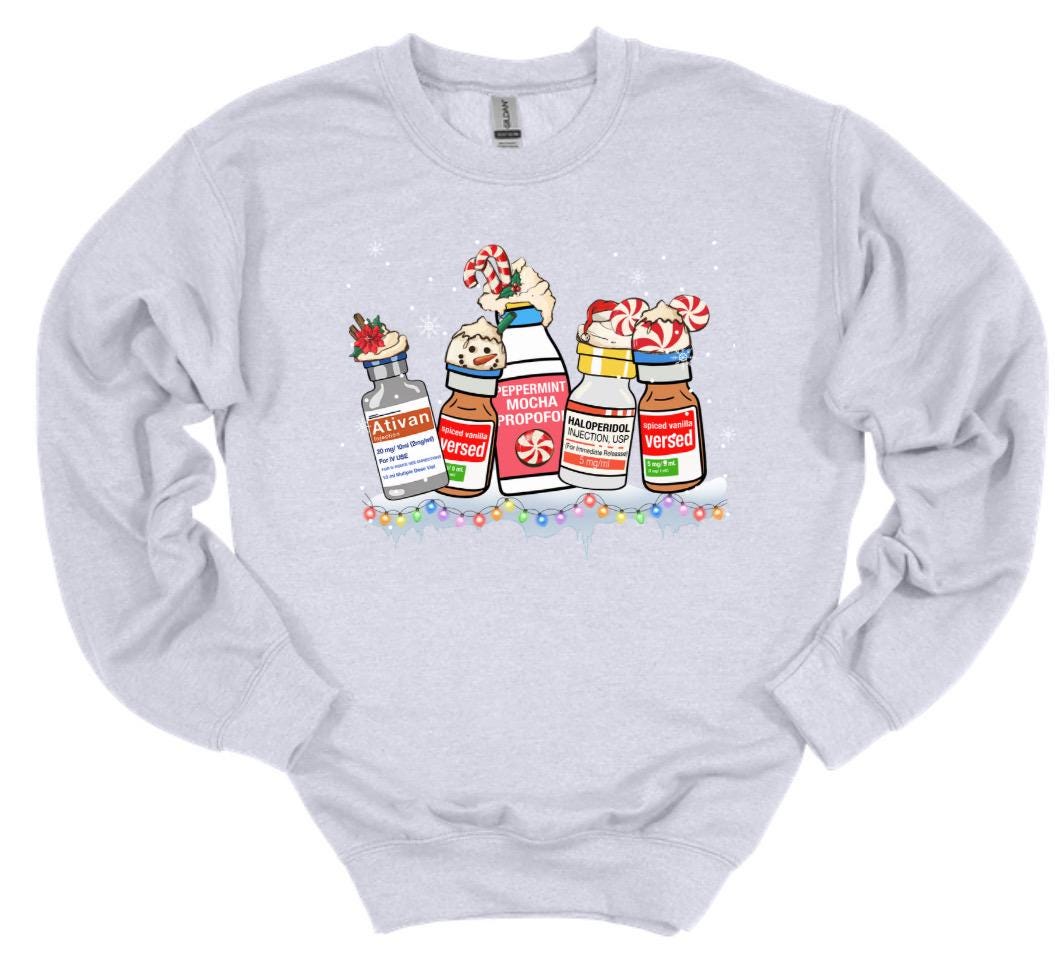 Nurse Christmas Meds Sweatshirt β’ Funny Holiday Medication Crewneck ICU Nurse Christmas Shirt Medical Xmas Sweater Pharmacy Christmas Shirt